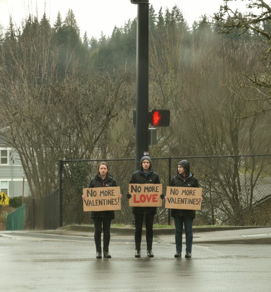 Traffic at the corner of N. G St. and W. Salal St. slowed to a crawl this morning as an agitated group of “Freedom From Lovers” extremists staged a daring, cardboard-fortified blockade. As of 10:14 a.m., the group, consisting of more than two individuals in tactical rain gear, had effectively shut down the area with chillingly concise demands: “NO MORE VALENTINES, NO MORE LOVE.” While the group has finally dispersed with minimal damage reported from local business employee attendance rates, Local authorities remain on high alert, as the protestors’ refusal to acknowledge Hallmark holidays has created a “tonal shift” within the community.